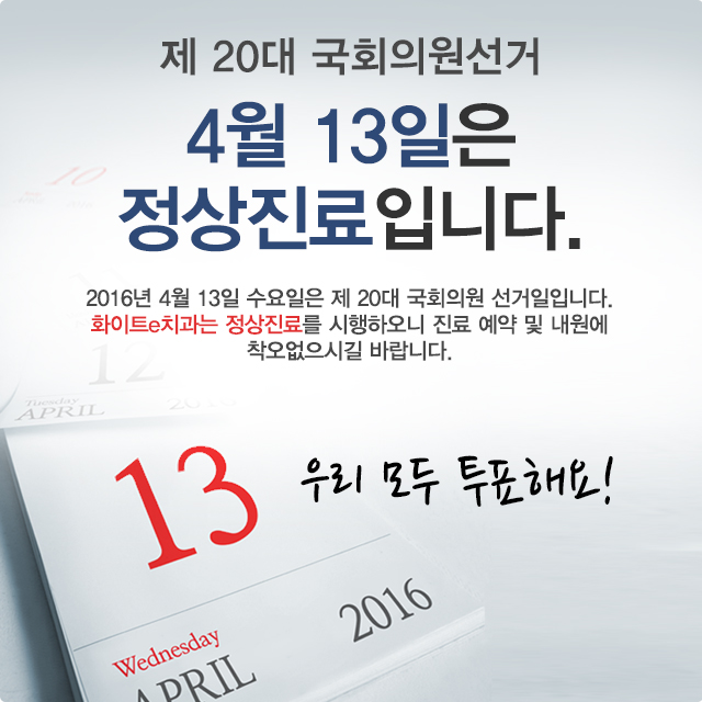 제 20대 국회의원 선거 4월 13일은 정상진료입니다.