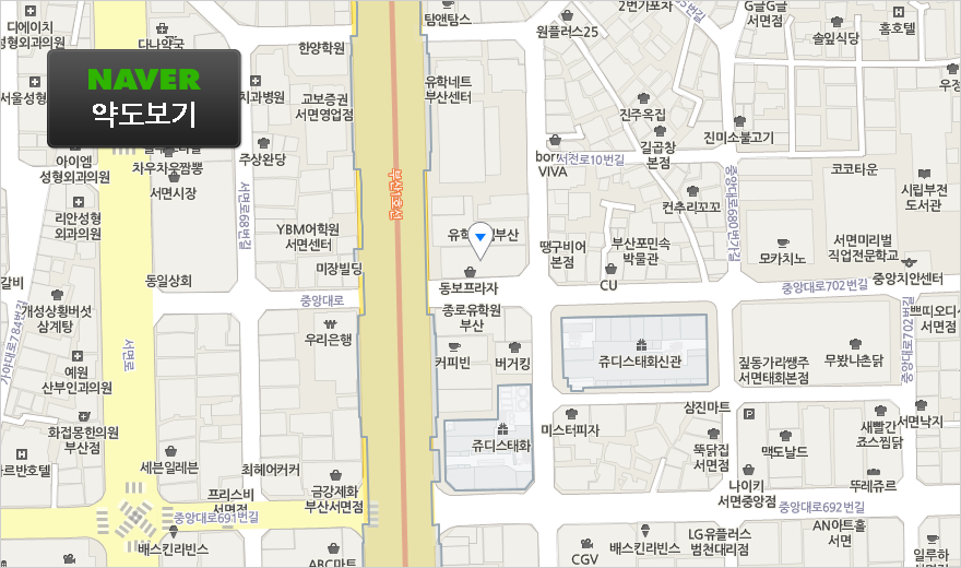 부산역 → 중앙대로 → 번천로 → 부전로 → 화이트E치과